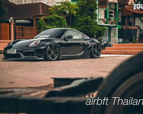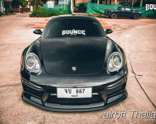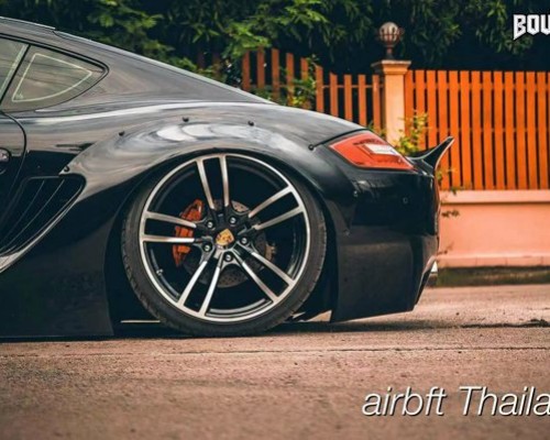 AIRBFTsuspension low lying cultural refit exchange center will share with you the case: Black Porsche Cayman 987 cambergang speeding at low altitude, Porsche is a supercar with performance, but its design and posture modification are no problem at all. Today, this black Porsche Cayman from Thailand is modified with AIRBFT aerodynamic suspension, with a perfect posture. The horsepower is low and beautiful.
