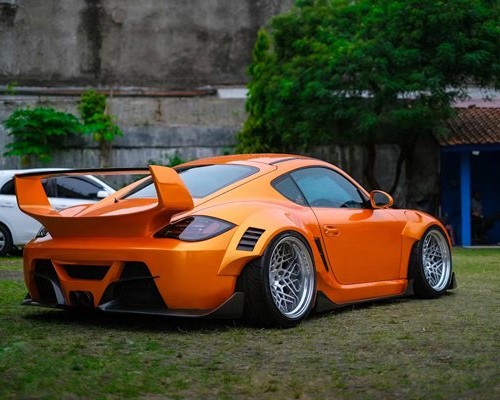 AIRBFTsuspension low-lying cultural refitting exchange center will share the case with you: Indonesian Porsche 911 cambergang domineering side leak, this orange Porsche Cayman 987 is an extreme modification, wide body and low-lying, the overall fashion trend, wonderful feedback from Indonesia, let’s appreciate the damn charm of Porsche 987 .